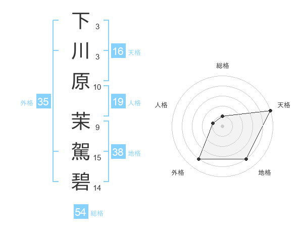 下川原 茉駕碧さんを姓名の画数から五運を鑑定