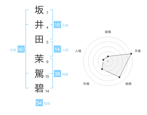 坂井田 茉駕碧さんの天格は16画の5点!