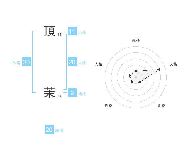頂 茉さんの総格は20画の1点!