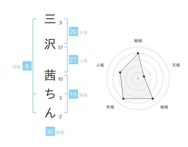 三沢 茜ちんさんを姓名の画数から五運を鑑定