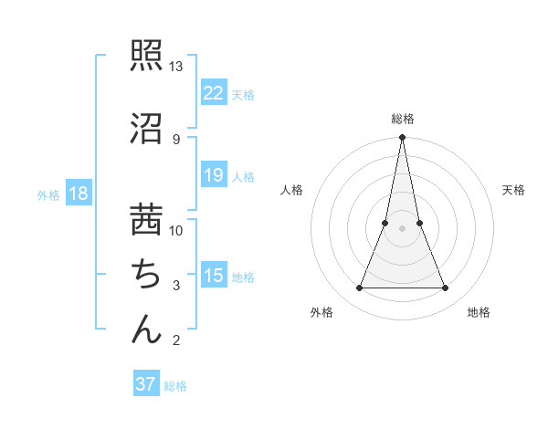 照沼 茜ちんさんの総格は37画の5点!