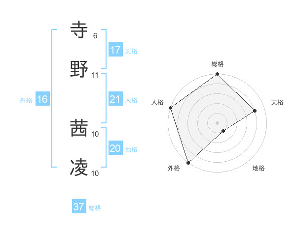 寺野 茜凌さんの総格は37画の5点!