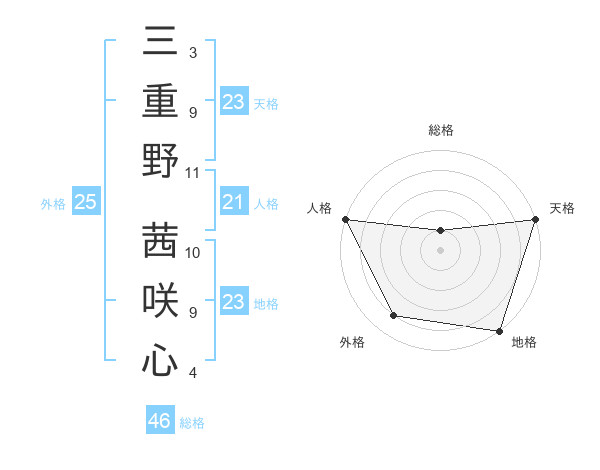 三重野 茜咲心さんの地格は23画の5点!
