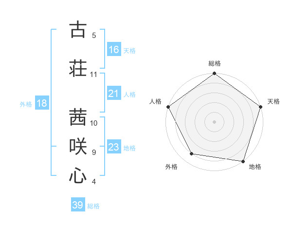 古荘 茜咲心さんの総格は39画の5点!