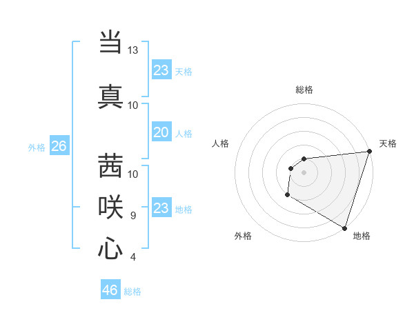 当真 茜咲心さんを姓名の画数から五運を鑑定