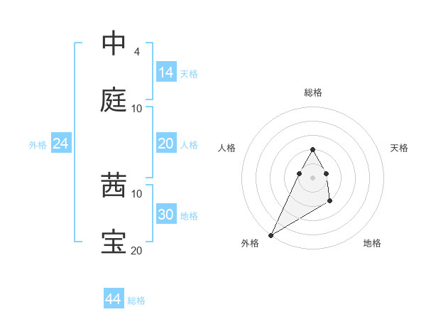 中庭 茜宝さんを姓名の画数から五運を鑑定