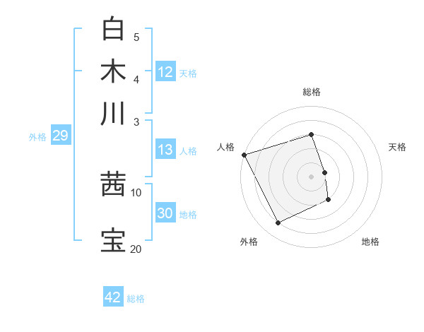 白木川 茜宝さんの総格は42画の3点!
