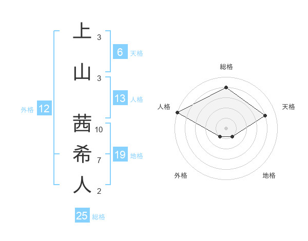 上山 茜希人さんを姓名の画数から五運を鑑定