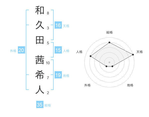 和久田 茜希人さんを姓名の画数から五運を鑑定