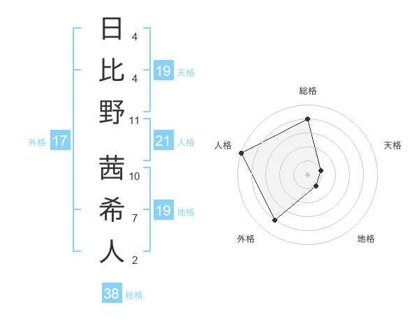 日比野 茜希人さんを姓名の画数から五運を鑑定