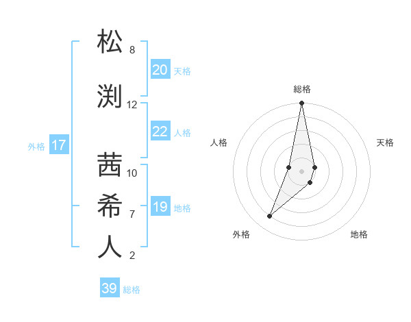 松渕 茜希人さんを姓名の画数から五運を鑑定