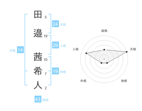 田邉 茜希人さんを姓名の画数から五運を鑑定