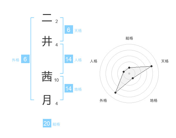 二井 茜月さんの総格は20画の1点!