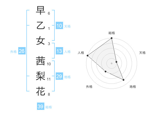 早乙女 茜梨花さんを姓名の画数から五運を鑑定