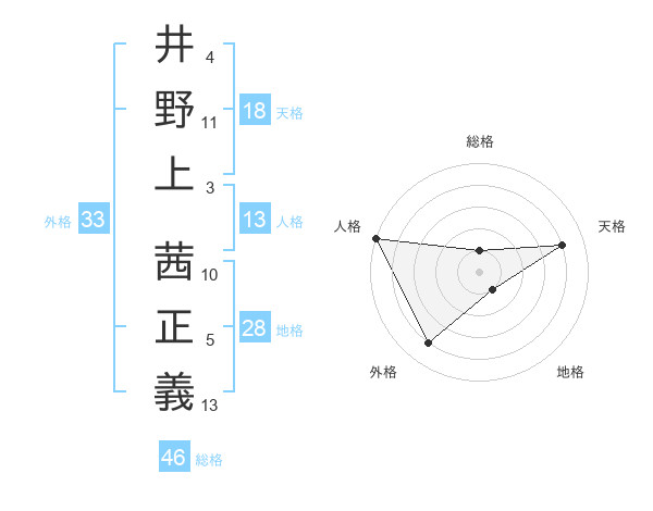 井野上 茜正義さんを姓名の画数から五運を鑑定