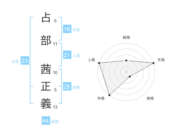 占部 茜正義さんを姓名の画数から五運を鑑定