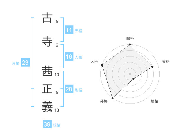 古寺 茜正義さんを姓名の画数から五運を鑑定