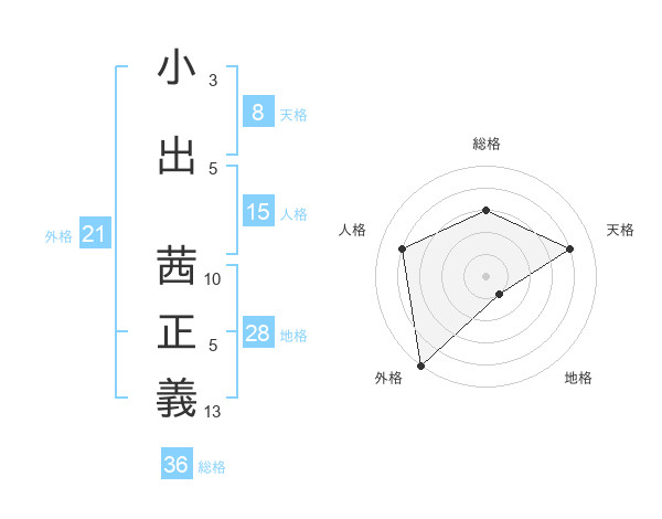 小出 茜正義さんの天格は8画の4点!
