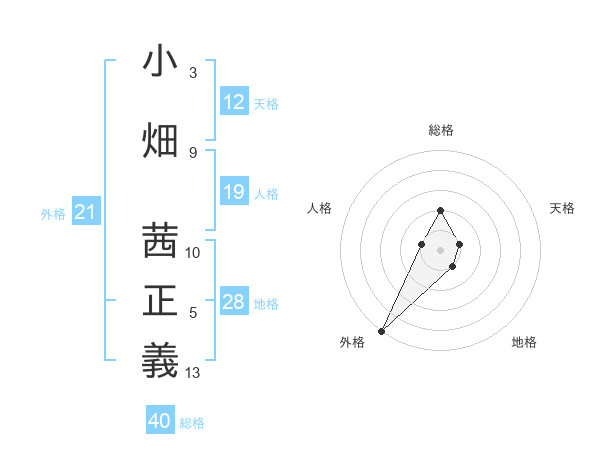 小畑 茜正義さんの天格は12画の1点!
