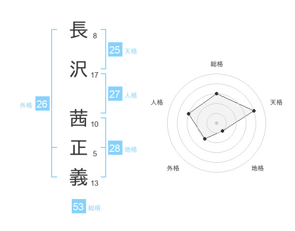 長沢 茜正義さんを姓名の画数から五運を鑑定