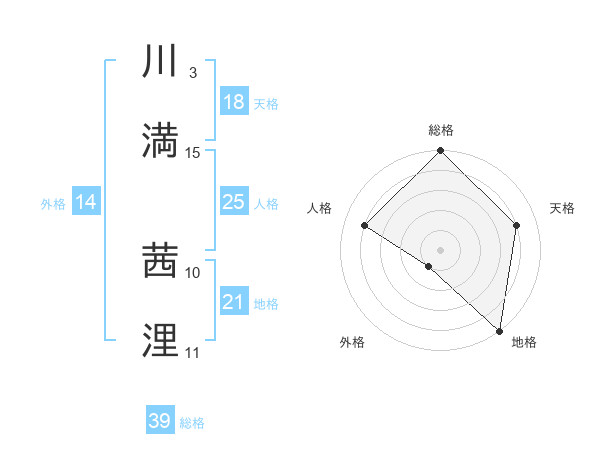川満 茜浬さんの天格は18画の4点!