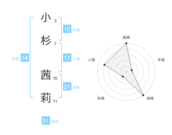 小杉 茜莉さんを姓名の画数から五運を鑑定