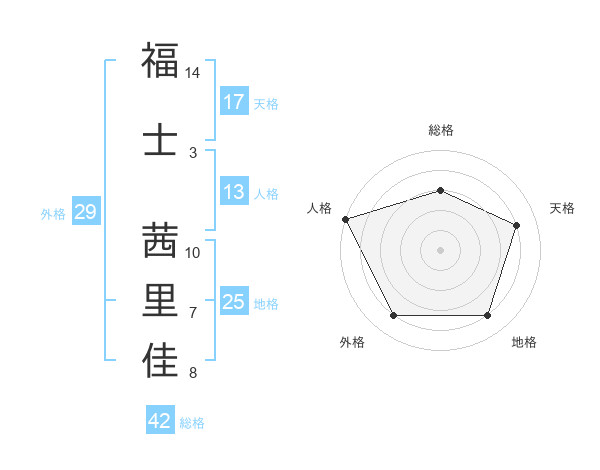 福士 茜里佳さんを姓名の画数から五運を鑑定