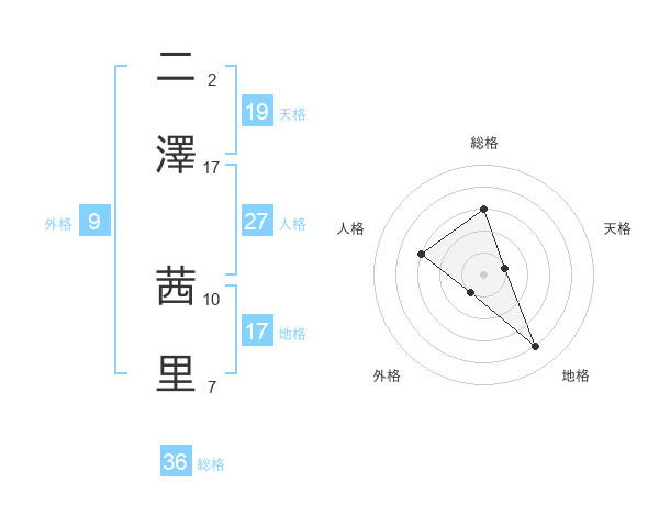 二澤 茜里さんを姓名の画数から五運を鑑定