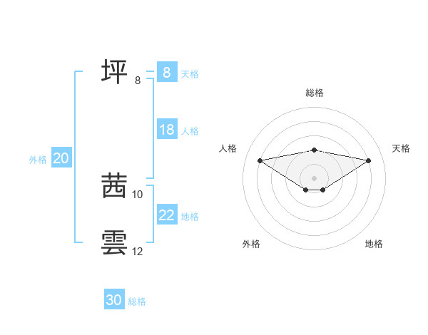 坪 茜雲さんの総格は30画の2点!