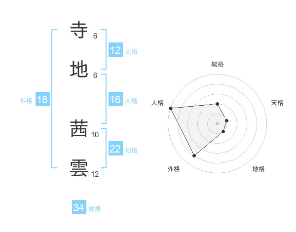 寺地 茜雲さんの地格は22画の1点!