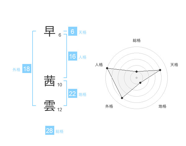 早 茜雲さんの天格は6画の4点!