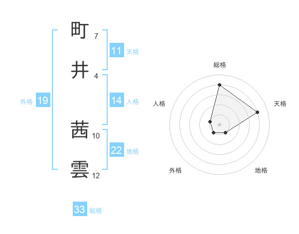 町井 茜雲さんの総格は33画の4点!