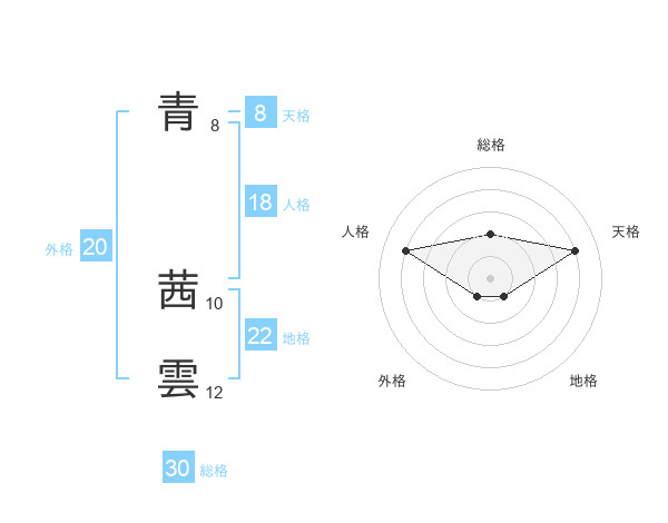 青 茜雲さんの総格は30画の2点!