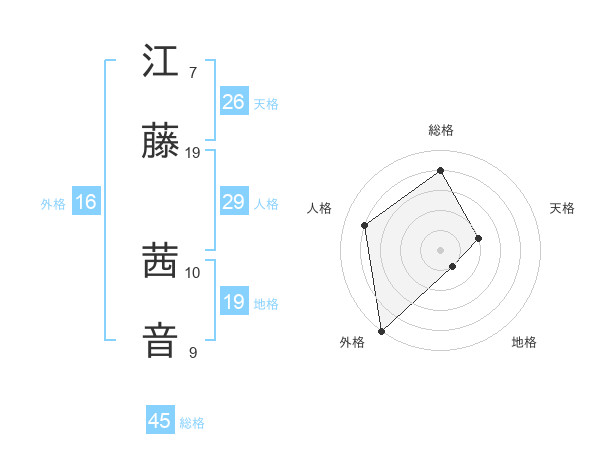 江藤 茜音さんの総格は45画の4点!