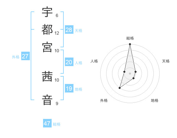 宇都宮 茜音さんを姓名の画数から五運を鑑定