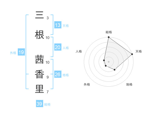 三根 茜香里さんの総格は39画の5点!