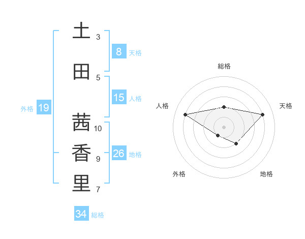 土田 茜香里さんを姓名の画数から五運を鑑定