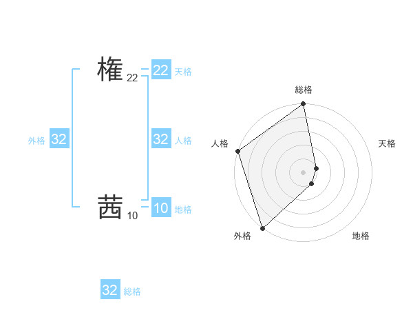 権 茜さんの外格は32画の5点