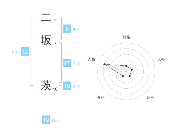 二坂 茨さんの外格は12画の1点!