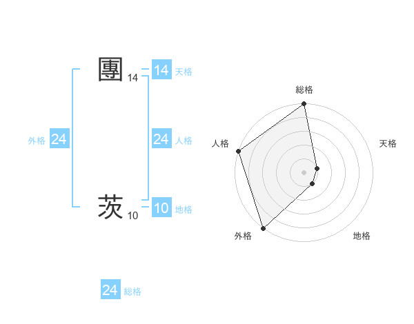 團 茨さんの外格は24画の5点!