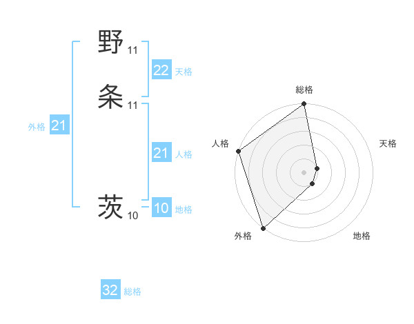 野条 茨さんの外格は21画の5点!