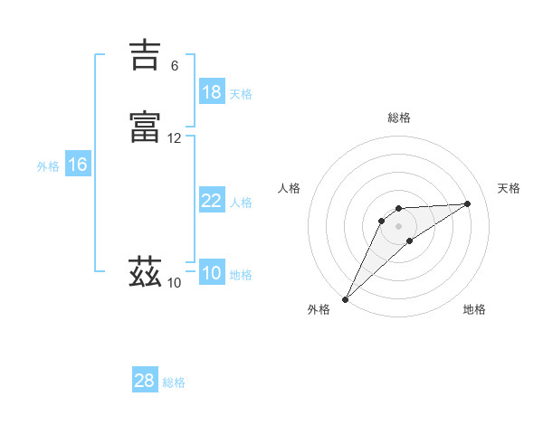 吉富 茲さんの総格は28画の1点!