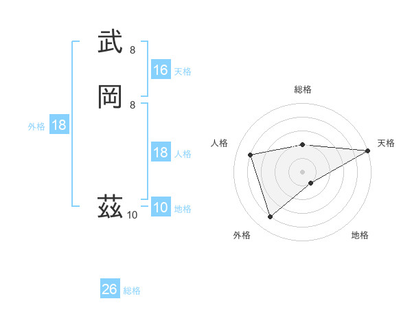 武岡 茲さんの総格は26画の2点!