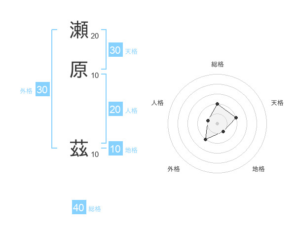 瀬原 茲さんの総格は40画の2点!