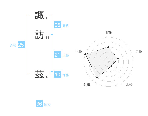 諏訪 茲さんを姓名の画数から五運を鑑定