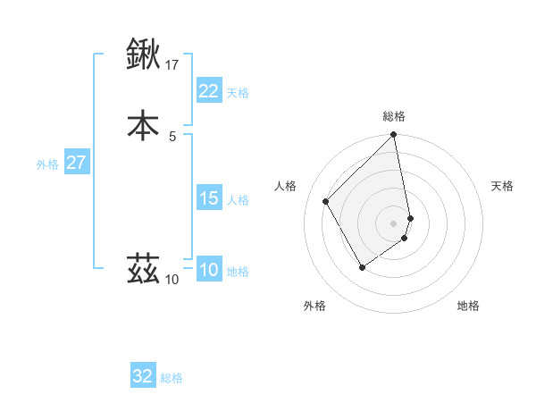 鍬本 茲さんを姓名の画数から五運を鑑定