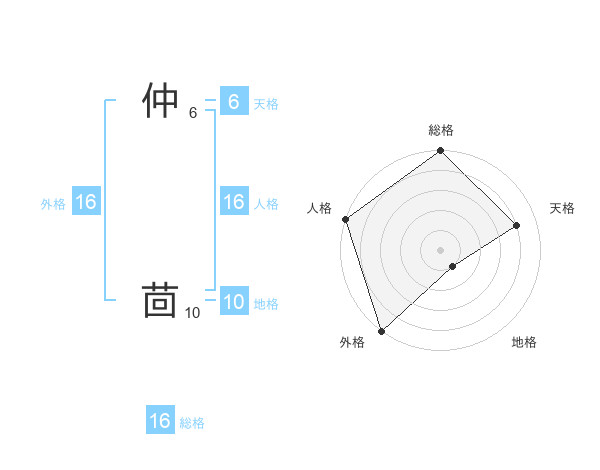 仲 茴さんの総格は16画の5点!