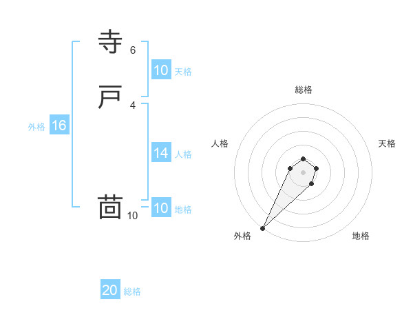 寺戸 茴さんの総格は20画の1点!