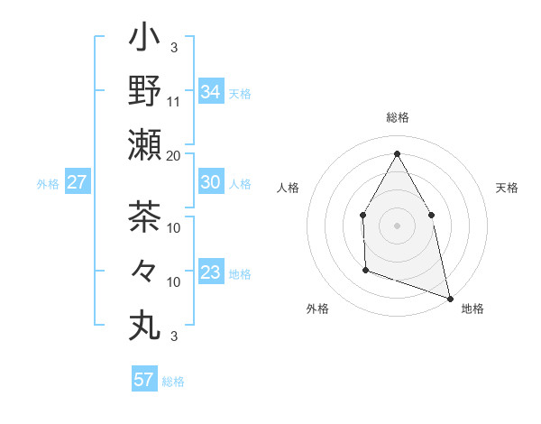小野瀬 茶々丸さんを姓名の画数から五運を鑑定