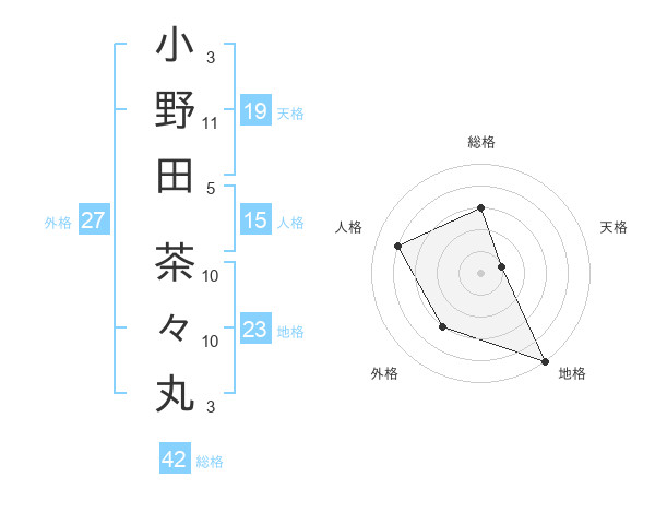 小野田 茶々丸さんの天格は19画の1点!